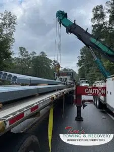 The load shift correction team responded to an incident on Pine Meadows Drive in Savannah, GA. The tow truck team was dispatched from Tim’s Towing & Recovery located on 2141 Gamble Rd, Savannah, GA 31405, United States.
